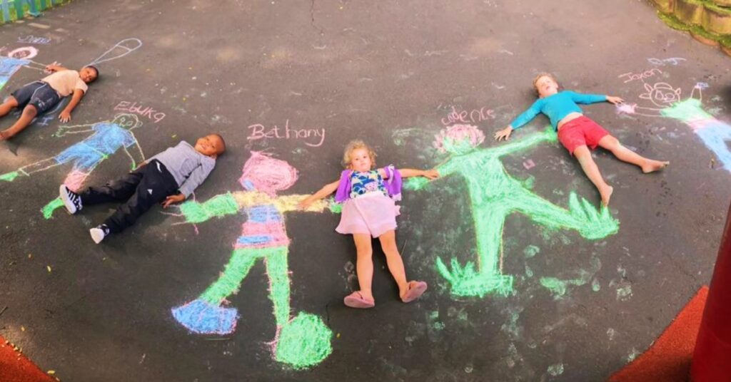 Pavement Chalk Drawing! A simple stick of colour turning concrete into a canvas. In those moments, the ground becomes a place for stories, rainbows, hopscotch games, and big ideas scribbled by little hands.